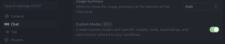An almost-hidden feature, very rough around the edges, is called Custom Modes. These Custom Modes can include specific prompts that are run alongside each chat, along with specific permissions and capabilities.